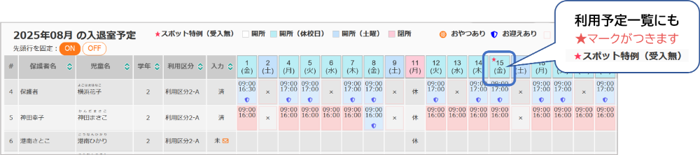 マーク」(スポット特例の受入無のマーク)が表示されます。