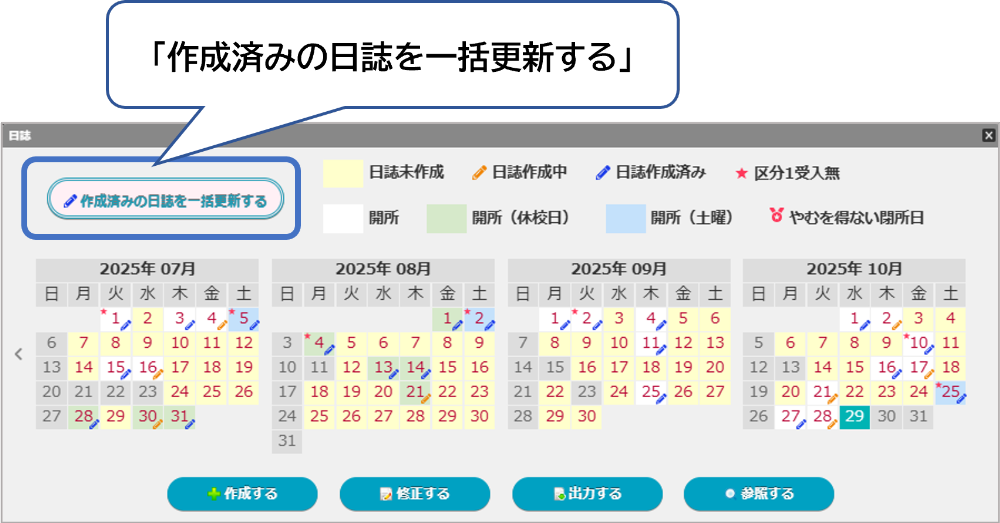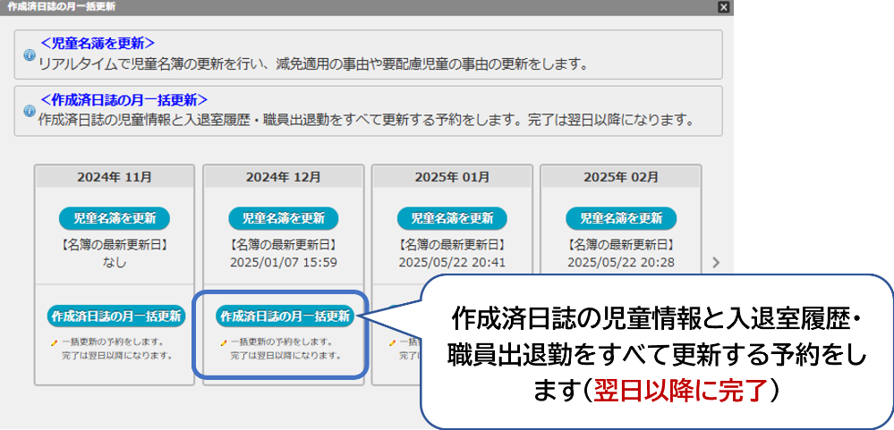 児童名簿や日誌を月単位一括更新できるようになりました。