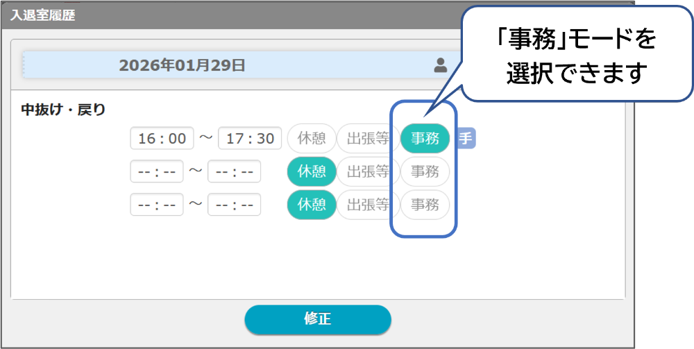 トップページ > お知らせ一覧 > 20260129_職員の中抜けに「事務」モードが追加