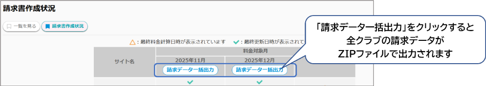 ・全クラブの請求書データを一括で出力して確認したい