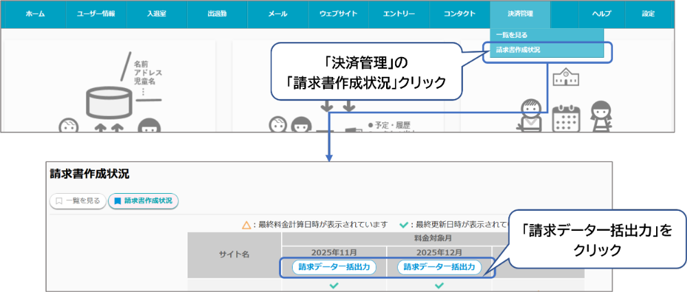 管理画面ホーム>決済連携の請求書作成状況