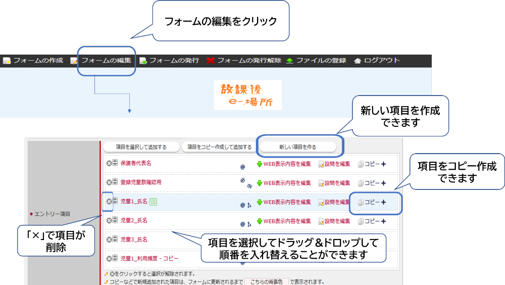 Q.作成したエントリーフォームを保護者へ公開する方法