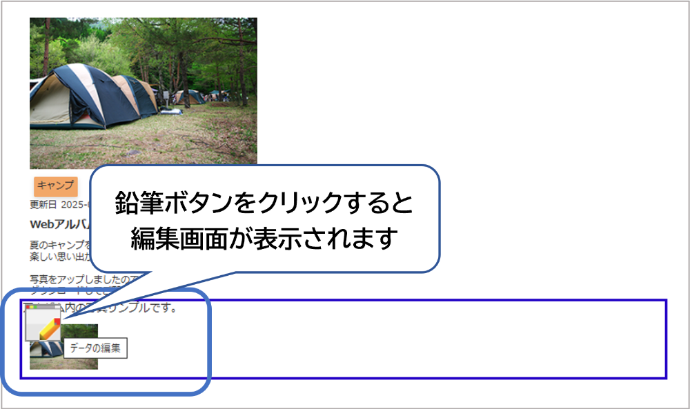 1)ページ右の鉛筆ボタンをクリックして編集モードにします。
